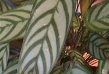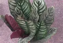 孔雀竹芋:竹芋科,肖竹芋属多年生常绿草本植物。植株挺拔株高可达60厘米。叶柄紫红色, 叶片薄革质,卵状椭圆形,叶面上有墨绿与白色或淡黄相间的羽状斑纹,就像孔雀尾羽毛上的图案,因而得名。…全部>>