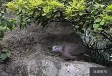 珠颈斑鸠,别名花斑鸠、珍珠鸠、花脖斑鸠、鸪鹪,是鸠鸽科副斑鸠属鸟类。体型中等,体长27~34cm,体重120~205g,雌鸟和雄鸟羽色相似,但雌鸟不如雄鸟羽色亮泽。珠颈斑鸠前额至头顶羽色稍淡,…全部>>