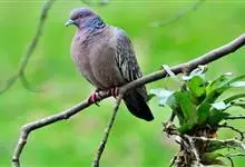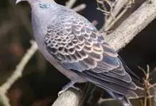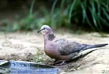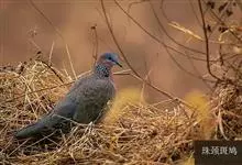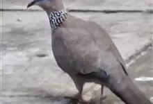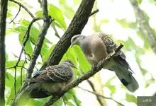珠颈斑鸠,别名花斑鸠、珍珠鸠、花脖斑鸠、鸪鹪,是鸠鸽科副斑鸠属鸟类。体型中等,体长27~34cm,体重120~205g,雌鸟和雄鸟羽色相似,但雌鸟不如雄鸟羽色亮泽。珠颈斑鸠前额至头顶羽色稍淡,…全部>>