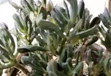筒叶花月,是景天科青锁龙属的多年生草本植物。植株多分株,灌木状,茎较粗壮,圆柱形,表皮灰褐色;叶片肉质,互生,呈圆筒状,簇生于茎或分枝顶端,叶端呈斜截形,截面为椭圆形;花呈星状,淡白色;花期秋季。…全部>>