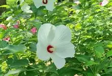 芙蓉葵是锦葵科木槿属植物,又名草芙蓉、大花秋葵,原产于北美。落叶灌木状。叶大、广卵形,叶柄、叶背密生灰色星状毛。花大,单生于叶腋,有白、粉、红、紫等色。喜阳、略耐阴,宜温暖湿润气候,忌干旱,耐水湿,…全部>>