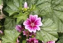 锦葵:二年生或多年生直立草本,高50-90厘米,分枝多,疏被粗毛。叶圆心形或肾形,具5-7圆齿状钝裂片,两面均无毛或仅脉上疏被短糙伏毛。花3-11朵簇生,小苞片3,长圆形疏被柔毛;花紫红色或白色,…全部>>