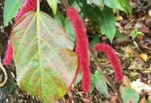 红穗铁苋菜:为大戟科、铁苋菜属植物,灌木,高0.5-3米。嫩枝被灰色短绒毛,毛逐渐脱落,小枝无毛。 花序色泽鲜艳,葇荑花序下垂,如狐狸尾状,雌花近卵形,长约0.8毫米,顶端急尖,具短毛;子房近球形,…全部>>