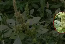 反枝苋是苋科苋属的一年生草本植物。株高达1米;茎密被柔毛;叶菱状卵形或椭圆状卵形,先端锐尖或尖凹,两面及边缘被柔毛,下面毛较密;穗状圆锥花序,顶生花穗较侧生者长;花被片长圆形或长圆状倒卵形,…全部>>