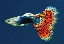 孔雀花鳉 ,俗名孔雀鱼,也称为凤尾鱼、彩虹花鳉、虹鳉、古比鱼等,是花鳉科花鳉属的一种热带鱼,雌雄鱼的体型和色彩差别较大,成年雄鱼身体瘦小,体长3-4厘米,体色绚烂多彩、体型优美;成年雌鱼体长5厘米…全部>>
