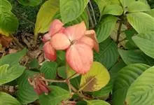 粉纸扇,茜草科玉叶金花属植物,半常绿灌木,株高1~3 m。叶对生,长椭圆形,顶端浙尖,基部楔形,全缘。…全部>>