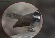 白眉扇尾鹟:体长17厘米,是一种中等体型的灰色扇尾鹟。色彩独特。宽宽的眉纹及前额白色,尾有白色宽边。髭纹白色,与黑色的脸及喉成对比;尾呈扇形,4对中央尾羽黑褐色,邻近两对具宽的白色端斑,最外侧两对白…全部>>