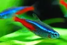 霓虹灯鱼又被称为红绿灯鱼、红莲灯鱼。鱼纲,脂鲤科。原产亚马孙河上游。体长3~4厘米,体形较细,色泽美丽,体上部的绿线,因光线角度不同,有时显出蓝色,与体下部的红线极为协调,又与腹部全红的新红绿灯鱼〔…全部>>