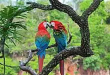 红绿金刚鹦鹉:是鹦鹉科、金刚鹦鹉属的大型攀禽。体长90-95厘米,翼展125厘米,体重1050-1700克,寿命80年。成鸟的头、颈部、胸部和翕两侧是美丽的红色羽毛。肩和三级飞羽绿色。背部,…全部>>