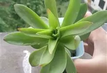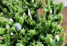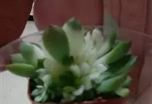 筒叶花月,是景天科青锁龙属的多年生草本植物。植株多分株,灌木状,茎较粗壮,圆柱形,表皮灰褐色;叶片肉质,互生,呈圆筒状,簇生于茎或分枝顶端,叶端呈斜截形,截面为椭圆形;花呈星状,淡白色;花期秋季。…全部>>