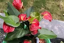花烛,别名红鹅掌、红掌、安祖花等,为天南星科花烛属的一种多年生草本植物。其茎矮;叶互生,叶片革质,有光泽,阔心形、圆心形,先端钝或渐尖,基部深心形;肉穗花序有细长花序梗,佛焰苞深红色或橘红色,…全部>>