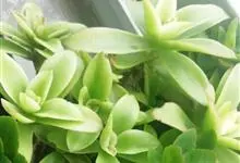 筒叶花月,是景天科青锁龙属的多年生草本植物。植株多分株,灌木状,茎较粗壮,圆柱形,表皮灰褐色;叶片肉质,互生,呈圆筒状,簇生于茎或分枝顶端,叶端呈斜截形,截面为椭圆形;花呈星状,淡白色;花期秋季。…全部>>