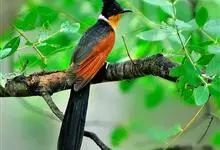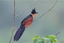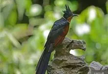 红翅凤头鹃:体长约38厘米,顶冠及凤头黑色,具显眼的直立凤头,背及尾黑色而带蓝色光泽,翅栗红色,喉及胸橙褐色,颈圈白色,腹部近白。虹膜淡红褐色。嘴黑色,下嘴基部近淡土黄色,嘴角肉红色,脚铅褐色。…全部>>