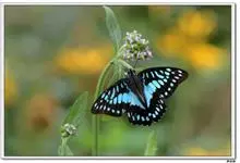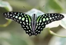 青带凤蝶Graphium sarpedon ,又名青凤蝶,是最普遍的中型凤蝶,飞行速度很快。青带凤蝶的翅膀中央有许多浅蓝色的斑点,很整齐地排列成一条直线。这些斑点由上而下逐渐变大,就像一条青色的带子。全部>>