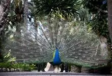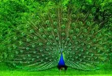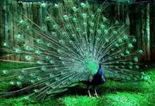 绿孔雀是鸡形目雉科孔雀属鸟类,别名:孔雀、越鸟、爪哇绿孔雀。雄性绿孔雀全身呈翠绿色,并反紫铜色光。头顶有一簇直立的冠羽,尾上复羽发达的约长1米,每羽端部有一个蓝色和翠绿色镶嵌的眼状斑,…全部>>