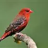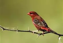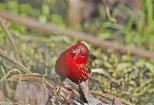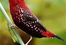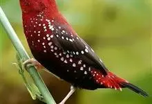 红梅花雀小型鸟类,体长9-10厘米。雄鸟通体朱红色,背、肩、胸等满布白色小斑点,两翅和尾黑褐色均具白色端斑,嘴红色,脚蜡黄色。雌鸟上体淡褐色或赭褐色,翅上中覆羽、大覆羽和内侧飞羽末端具白色斑点,…全部>>