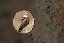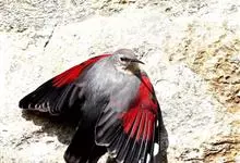 红翅旋壁雀:体重15-23克,体长120-178毫米。是一种体型略小的鸟类。尾短而嘴长,翼具醒目的绯红色斑纹。飞羽黑色,外侧尾羽羽端白色显著,初级飞羽两排白色点斑飞行时成带状。繁殖期雄鸟脸及喉黑色,…全部>>