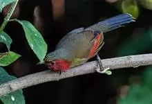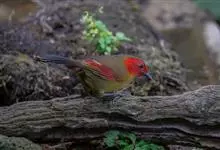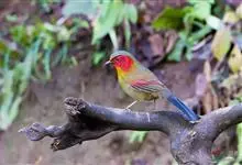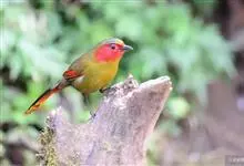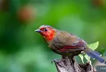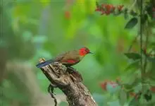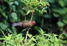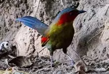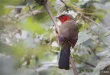 红翅薮鹛是噪眉科、薮鹛属中型鸟类,体长21-24厘米。头顶灰褐色,头侧和颈侧赤红色,上体橄榄褐色,翅上具红色块斑,尾具红色或橙黄色块斑,下体灰色沾褐。虹膜褐色或红色,嘴黑色,脚暗褐色或淡灰褐色。…全部>>