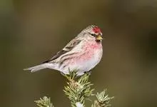 白腰朱顶雀为雀科金翅雀属的鸟类,体型似麻雀,体长约13厘米。额和头顶深红色,眉纹黄白色;上体各羽多具黑色羽干纹;下背和腰灰白色,而沾粉红色,翼上具二条白色横带;喉、胸均粉红色,下体余部白色。…全部>>