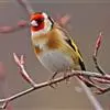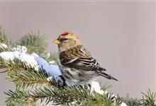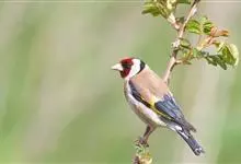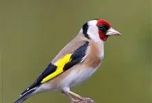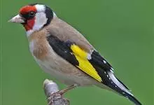 红额金翅雀:共有14个亚种。小型鸟类,体长12-14厘米。额、脸颊和颏朱红色,眼先和眼周黑色,在淡色的头部极为醒目。上体灰褐或乌褐色,尾上覆羽白色,两翅和尾黑色,翅上有黄色斑。下体喉、胸灰褐或乌褐色…全部>>
