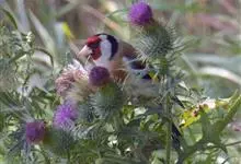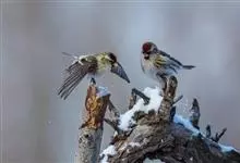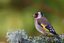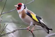 红额金翅雀:共有14个亚种。小型鸟类,体长12-14厘米。额、脸颊和颏朱红色,眼先和眼周黑色,在淡色的头部极为醒目。上体灰褐或乌褐色,尾上覆羽白色,两翅和尾黑色,翅上有黄色斑。下体喉、胸灰褐或乌褐色…全部>>