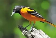 金黄鹂是中型鸣禽。体长24厘米。头全黄色。体羽鲜丽,主要由为黄和黑的颜色组合,雌鸟与幼鸟多具条纹。雄性成鸟眼先、翼及尾基部黑色,其余为鲜亮黄色。雌鸟较暗淡而多绿色。幼鸟偏绿色,下体具细密纵纹。虹膜红…全部>>