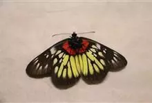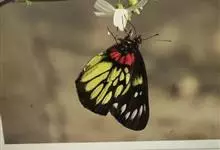红肩粉蝶,Delias pasithoe curasena,属粉蝶科斑粉蝶属的一个物种。翅膀背面以黑褐色为主,只在翅面上有一些蓝白色小斑或鳞块,雄蝶并于后翅内缘附近有块鲜黄色区;腹面以黑褐色为底色,…全部>>