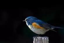 红胁蓝尾鸲俗名:蓝点冈子、蓝尾巴根子、蓝尾杰、蓝尾欧鸲。体型略小而喉白的鸲。特征为橘黄色两胁与白色腹部及臀成对比。雄鸟上体蓝色,眉纹白;亚成鸟及雌鸟褐色,尾蓝。…全部>>