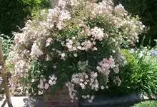 粉团蔷薇是蔷薇科、蔷薇属的攀援灌木,小枝圆柱形,通常无毛,小叶倒卵形、长圆形或卵形,边缘有尖锐单锯齿,上面无毛,下面有柔毛;花多朵,排成圆锥状花序,花直径1.5-2厘米,萼片披针形,花瓣宽倒卵形,…全部>>
