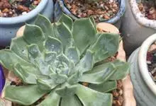 蓝石莲是景天科、拟石莲花属的多肉植物。茎部粗壮,成熟植株茎部木质化。叶片莲座型密集排列,株径不会很大,叶片相对较薄,常年绿色,表面布有白色粉末,中部凹陷,呈倒水滴状。叶尖较尖,叶缘光滑无褶皱,…全部>>