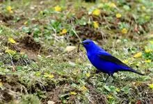 蓝大翅鸲是鹟科、大翅鸲属小型鸟类,体长19-21厘米。两翅尖长。雄鸟通体鲜紫蓝色具金属光泽。两翅和尾黑色。雌鸟上体灰褐色,头、颈、翕具棕白色纵纹,翅上有白色翅斑。虹膜暗褐色,嘴、脚黑色。…全部>>