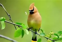 雪松太平鸟体形中等大小,体长约在19厘米左右。该物种雄雌同形同色,太平鸟成鸟额部及面部前端为栗色,向头后部颜色逐渐变浅;额基部、眼先、眼周及眼后部有黑色纹带,颌部亦有黑色区域;枕部黑色,与贯眼的黑色…全部>>