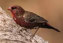 红梅花雀小型鸟类,体长9-10厘米。雄鸟通体朱红色,背、肩、胸等满布白色小斑点,两翅和尾黑褐色均具白色端斑,嘴红色,脚蜡黄色。雌鸟上体淡褐色或赭褐色,翅上中覆羽、大覆羽和内侧飞羽末端具白色斑点,…全部>>