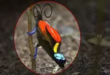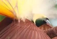 大极乐鸟是极乐鸟属中最大的鸟种。成年雄鸟体长可达到43厘米,雌性可达35厘米。雄鸟的额、颊、喉等墨绿色;头、颈黄色;上体暗赤栗色;腹部葡萄红色,胁部有长饰羽,其基部橙黄,中部黄色,…全部>>