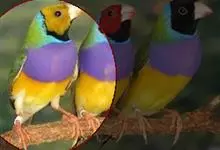 七彩文鸟是梅花雀科、鹦雀属鸟类。头部羽色有黑、红、黄之别。幼鸟体色初期为灰色,下部较淡,腹白;背部为橄榄绿,胸部呈葡萄色,成熟后面部会变成红色或黄色。雄性背部绿色,紫色胸前有圆形或椭圆形斑块,…全部>>