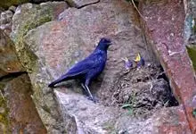 紫啸鸫是雀形目鹟科啸鸫属鸟类,又称黑雀儿,山鸣鸡、乌精。成鸟眼先及颏绒黑色;前额、头顶至背及肩羽和颈侧呈深紫蓝色,羽端具较密集的亮蓝色点斑;腰至尾上覆羽的深紫蓝色较暗而杂黑褐色,…全部>>