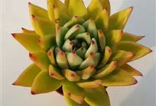 红艳辉又名红辉炎,景天科拟石莲花属的多肉植物。是锦晃星的杂交品种。株型呈莲座状,秋天会变红,很美丽的品种。栽培较为普遍,其肥厚、多肉的叶片布满了细短的白色绒毛,叶缘顶端的红色鲜艳夺目。 全部>>
