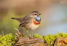 蓝点颏亦称“蓝喉歌鸲”,通称蓝靛颏儿。身体大小和麻雀相似,体长12-13厘米,体重17-18克。头部、上体主要为土褐色。眉纹白色。尾羽黑褐色,基部栗红色。颏部、喉部辉蓝色,下面有黑色横纹。下体白色。…全部>>
