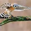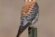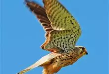 红隼:是隼科、隼属的小型猛禽之一。体重173-335克,体长305-360毫米。翅狭长而尖,尾亦较长,外形和共同爪隼非常相似。雄鸟头蓝灰色,背和翅上覆羽砖红色,具三角形黑斑;腰、尾上覆羽和尾羽蓝灰色,…全部>>