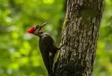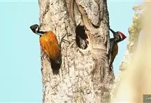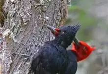 白腹黑啄木鸟,是啄木鸟科、黑啄木鸟属的中型鸟类,体长43-46厘米,头顶具长的红色羽冠,颚纹亦为红色,其余头、颈、胸和上体黑色,腰和腹白色,飞翔时白色腋羽和翅下覆羽亦明显可见。雌鸟头顶黑色,…全部>>
