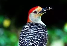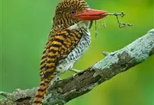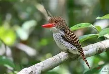 红腹啄木鸟成年雄鸟头项有红帽,翅膀和上体是黑白相间的斑纹状羽毛,腹部有一片红羽毛。头亦大,但颈较长,嘴强硬而直,呈凿形,鼻孔裸露;尾羽羽干大都硬挺且尖,尾羽12片,初级飞羽9片。头骨为蜥腭型,…全部>>