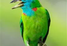 绿拟啄木鸟为鴷形目,须科,拟啄木属的一种。形较大拟啄木鸟略小,体长约260mm。头、颈及胸浅褐而具淡黄白色条纹;喉几为淡黄白色;身体余部草绿色。虹膜棕褐色,眼周裸露部黄色;嘴峰角黄色;跗跖和趾角黄…全部>>