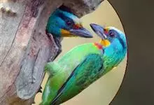 蓝喉拟啄木鸟,是须鴷科、拟啄木鸟属的鸟类。蓝喉拟啄木鸟为小型鸟类,体长20-23厘米。前额至头顶鲜红色,其上有一宽阔的黑色横带,将此红色分为前后二块;头侧、颏、喉蓝色,下喉两侧各具一红色点斑。…全部>>