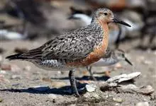 红腹滨鹬,是鹬科、滨鹬属的小型涉禽,体长23-25厘米,嘴较短而直、黑色,脚亦甚短、绿色。体较粗胖。夏季上体灰褐色具黑色中央纹,背具棕栗色和白色斑纹和羽缘,头侧和整个下体栗红色。冬季棕红色消失,…全部>>