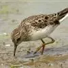 泽鹬:小型涉禽,体长19-26厘米。嘴长,相当纤细,直而尖。颜色为黑色,基部绿灰色,脚细长,暗灰绿色或黄绿色。夏季上体灰褐色具黑色斑,腰白色并向下呈楔形延伸。下体白色,颈、胸具细的黑色纵纹。…全部>>
