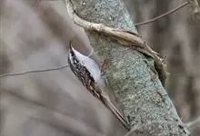 旋木雀是旋木雀科旋木雀属的一种动物。小型鸟类,体长12~15厘米,平均重10克。嘴长而下曲,上体棕褐色具白色纵纹,腰和尾上覆羽红棕色,尾黑褐色,外翈羽缘淡棕色,翅黑褐色,翅上覆羽羽端棕白色,…全部>>