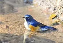 红胁蓝尾鸲俗名:蓝点冈子、蓝尾巴根子、蓝尾杰、蓝尾欧鸲。体型略小而喉白的鸲。特征为橘黄色两胁与白色腹部及臀成对比。雄鸟上体蓝色,眉纹白;亚成鸟及雌鸟褐色,尾蓝。…全部>>