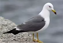 灰翅鸥,夏羽头、颈、腰、尾白色;肩、背和翅上覆羽鸽灰色。冬羽和夏羽相似,但头和颈具淡褐色纵纹,有时扩展至上胸。嘴黄色,下嘴先端具红斑;幼鸟嘴黑色。脚粉红色。栖息于海岸:悬岩,海滨沙滩于近海海岛上。常…全部>>