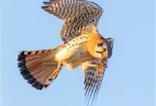 红隼:是隼科、隼属的小型猛禽之一。体重173-335克,体长305-360毫米。翅狭长而尖,尾亦较长,外形和共同爪隼非常相似。雄鸟头蓝灰色,背和翅上覆羽砖红色,具三角形黑斑;腰、尾上覆羽和尾羽蓝灰色,…全部>>