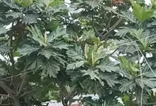 面包树 Fosberg)是桑科波罗蜜属植物。叶大,成熟之叶羽状分裂,表面深绿色,背面浅绿色;穗状花序单生叶腋,雄花序长圆筒形至长椭圆形或棒状;聚花果倒卵圆形或近球形;花期为3~5月,果期为7~10月。…全部>>